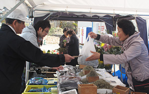 2011年5月1日から、200年以上の歴史がある伝統の朝市が復活しました。同年11月からは陸前高田未来商店街で開催しています。地元でとれた野菜や海産物、手造りの餅やスイーツ、切り花や寄せ植え、ミシンの修理も並びます。でも一番の売りは、作り手の顔が見え、楽しいおしゃべりをしながら買い物が出来ること!