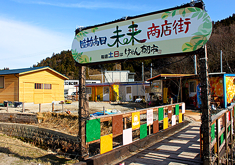 陸前高田未来商店街は地域の人たちが気兼ねなく集い、子どもたちからお年寄りのかたまでの元気な笑い声を創造する町並みを目指しています。近隣の商業施設の方々と一緒になり、地域の復旧・復興へ励んでいきます。一店舗一店舗がいままで以上に商売に向き合い、お客様を含めた地域の皆様と一緒に復興への道のりを一歩一歩進んでまいります。